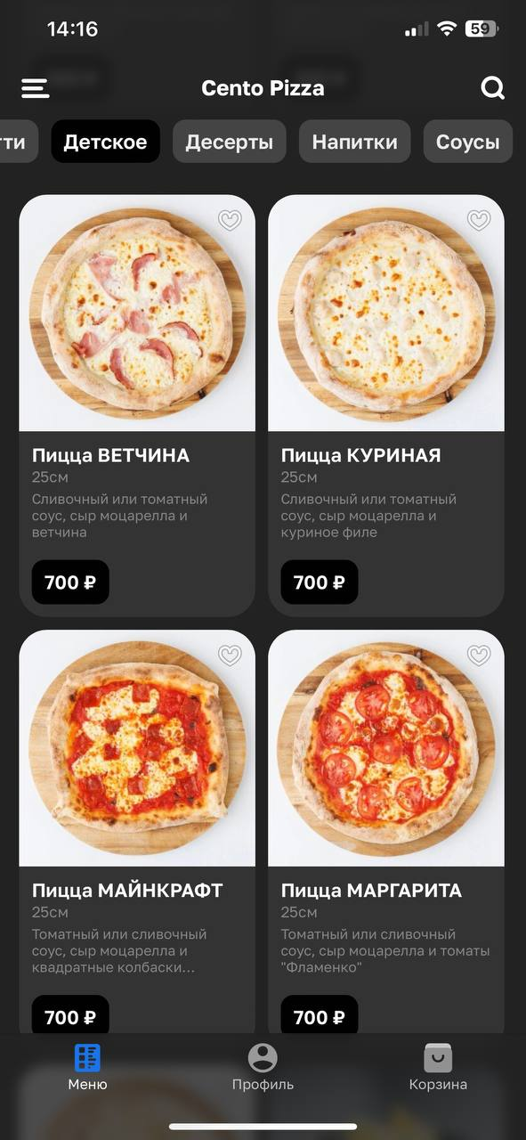 Тесто на закваске, томатный соус, сыр моцарелла, морской коктейль: осьминожки, мидии, креветки и кальмары; маслины, помидорки черри, сыр пармезан, орегано, оливковое масло и базилик.